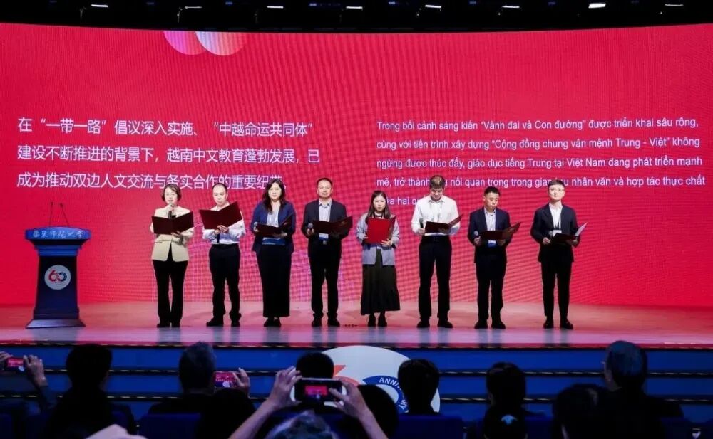 会上,科大讯飞还和华东师范大学、华中科技大学、天津大学、云南大学、越南胡志明市商业华语培训中心、广西大学、广西师范大学一起发布了《中越中文教育合作倡议书》,提出共建中文专业、共筑“中文+”人才培养体系、共享智慧教学平台、共办学术交流四大方向,致力于构建“学科建设-人才培养-资源共享”三位一体合作机制。