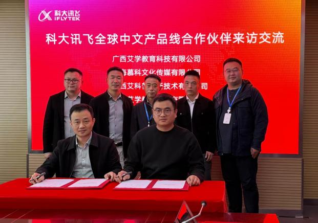 10月28日,科大讯飞全球中文学习平台产品线合作伙伴签约仪式在合肥总部举行。科大讯飞教育事业群副总裁汪张龙,全球中文学习平台产品线总经理解飞与来自广西、上海、云南等地的四家教育科技企业负责人共同出席仪式,签署国际中文学习产品合作协议,标志着双方在推动中文教育智能化、国际化方面迈出关键一步。