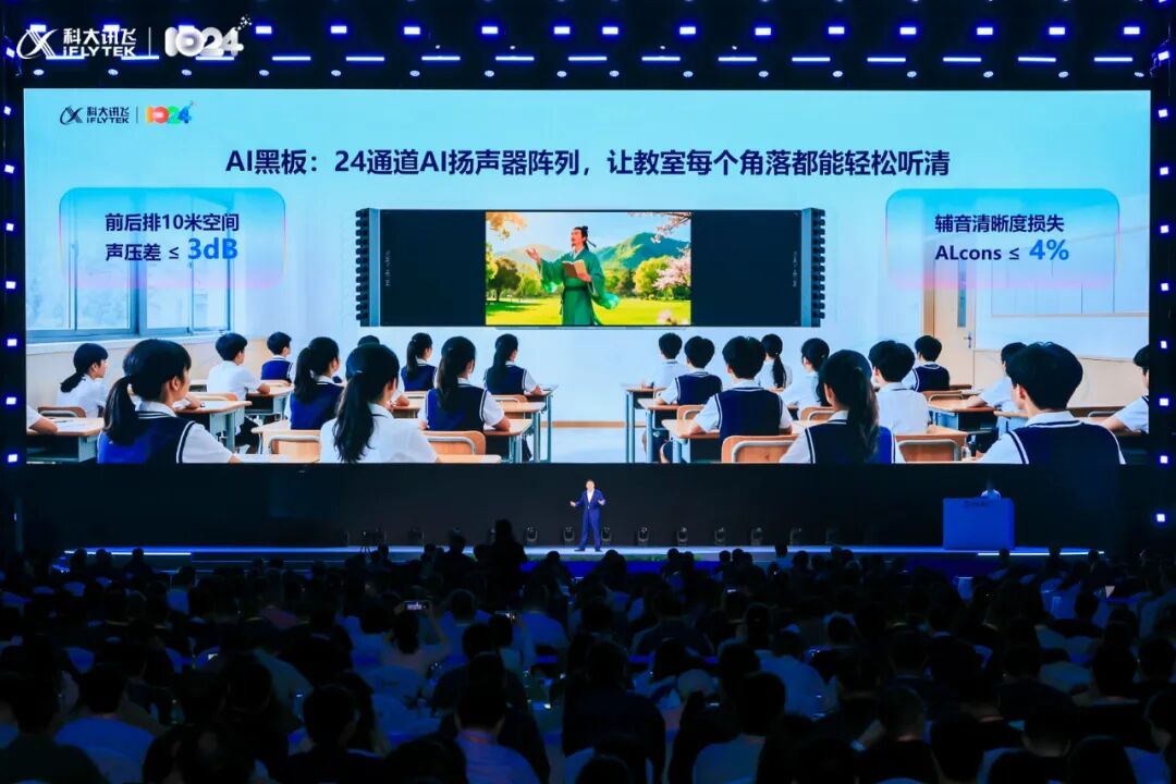 以教室场景为例,讯飞AI黑板拥有24通道AI扬声器阵列,每个孩子都能听清老师的讲课。
