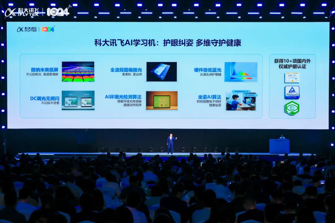 在自主可控的技术底座技术上,科大讯飞发布了融合AI+麦克风阵列、AI+扬声器阵列等软硬件一体的解决方案以及多模态交互能力,更围绕“更懂你的AI”发布或升级了教育等多个领域的AI新产品,创造AI+教育的无限可能。