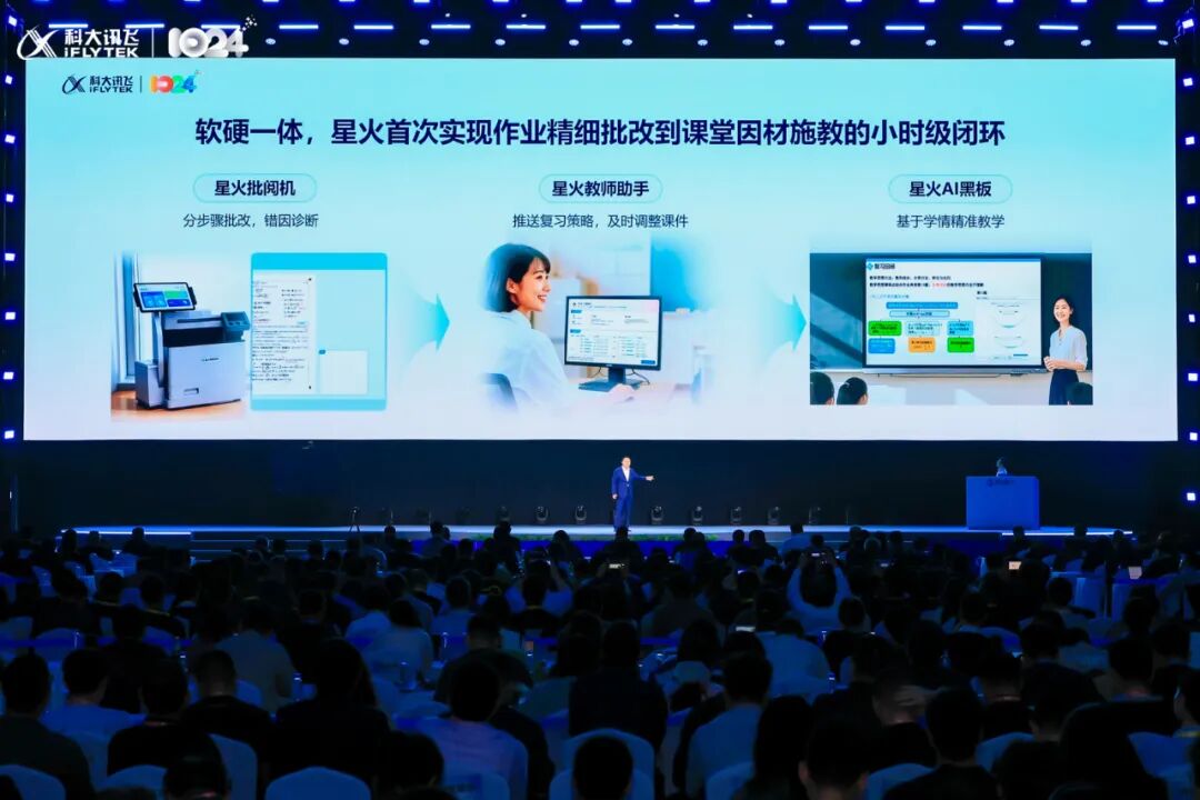 在软件上,三级错因体系能分析出3大类、3层级、4000+错因标签;在硬件上,通过星火智能批阅机实现分步骤批改、错因诊断,通过星火教师助手推送复习策略并及时调整课件,通过讯飞AI黑板实现基于学情的精准教学。“这能实现从作业精细批改到课堂因材施教的小时级闭环,引领教学范式变革。”刘庆峰说。