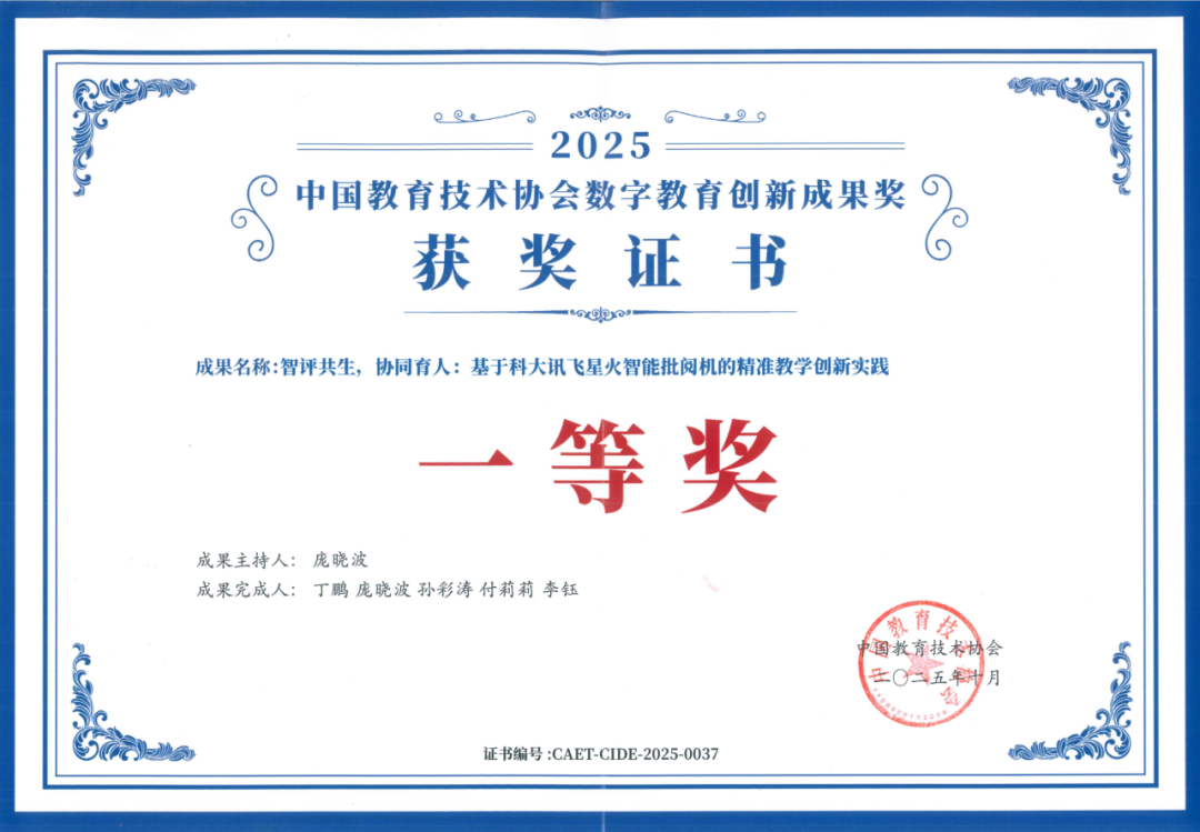 近日,中国教育技术协会2025年“数字教育创新成果奖”评选结果揭晓。科大讯飞星火智能批阅机凭借“智评共生,协同育人”的创新实践,以前瞻的教育理念与先进的技术实力从全国众多成果中脱颖而出,荣膺一等奖。