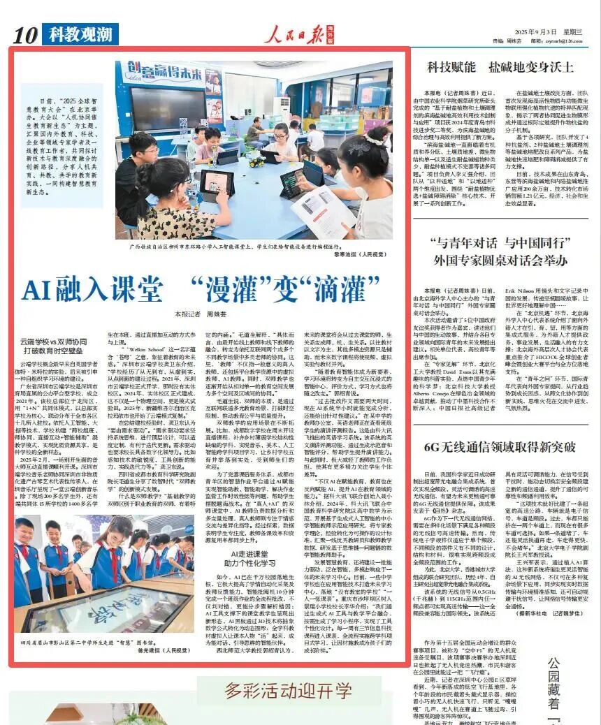 学校实践样本:武汉经开神龙小学的“AI智慧课堂”作为世界数字教育大会观摩样板,向全球展示中国课堂变革经验;