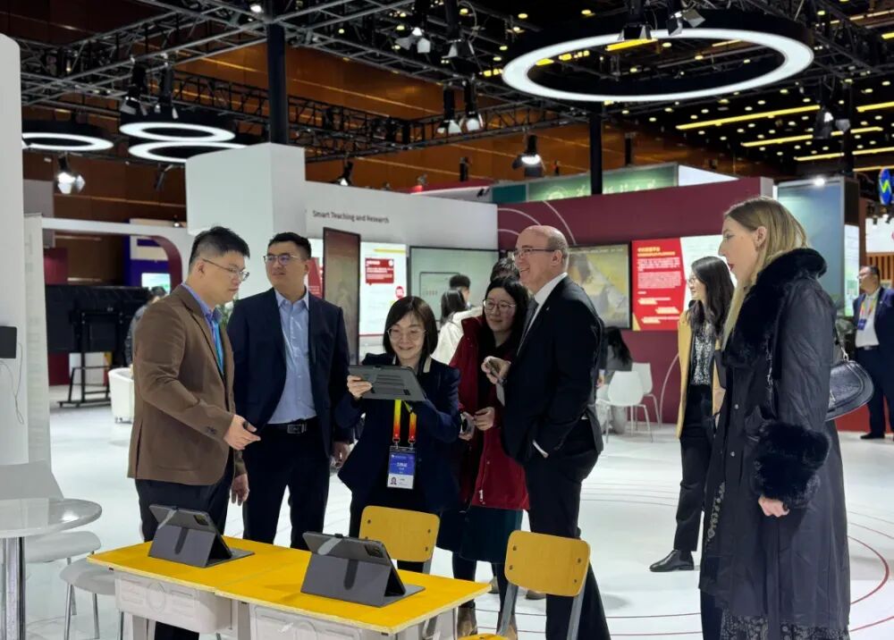 大会期间,一系列突破性的国际中文教育数智化产品正式发布。其中,由教育部语合中心与科大讯飞联合打造的中文智慧教室成为焦点,这一创新成果深度融合多语种翻译、语音评测等前沿人工智能技术,开创性地实践“虚拟教师”与真人教师协同授课新模式,为课堂教学全流程提供精准赋能。