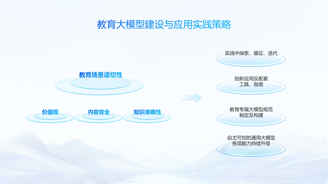 与此同时,聂小林也表示:AI在教育领域应用的风险与挑战也受到重视。科大讯飞认为首先应以自主可控的通用大模型为底座,持续迭代提升效果;并在此基础上制定教育专属大模型的规范标准,指导模型发展;通过配套工具应用、指南的开发,避免技术滥用;并在实践中持续探索、循证、迭代。