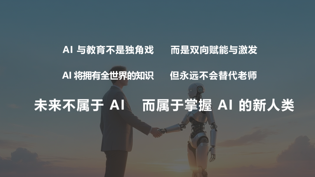 “AI将拥有全世界的知识,但永远不会替代老师。”聂小林在分享最后强调:AI与教育不是独角戏,而是双向赋能与激发。未来不属于AI,而属于掌握AI的新人类、新教师、新教育工作者。