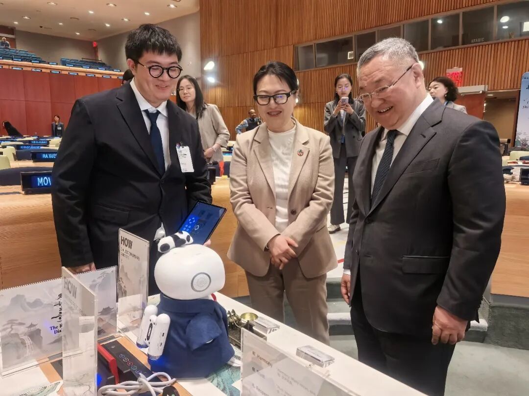 4月13日,由中国常驻联合国代表团主办的2026年联合国中文日活动在联合国总部开幕。在以“翰墨和鸣,华章同赋”为主题的文化活动中,科大讯飞的人工智能教育机器人“小飞8号”在联合国总部亮相。