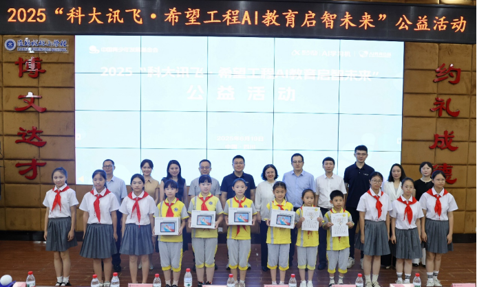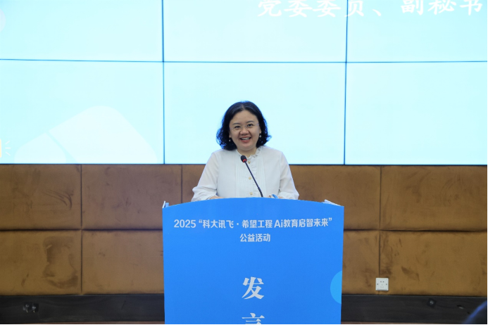 中国青少年发展基金会李虹遐副秘书长在讲话中表示,团中央和中国青少年发展基金会发起的希望工程,始终坚守助学育人、为党育人的初心使命,今年与科大讯飞携手启动公益项目,捐赠AI学习机,开展AI科技大篷车进校园、AI公益科普课等活动,让先进技术以可触可感的方式走进校园,成为孩子们个性化的生活学习伙伴。是一次科技力量与公益情怀的深度融合,更是一场聚焦未来助力乡村科普教育发展的积极实践。