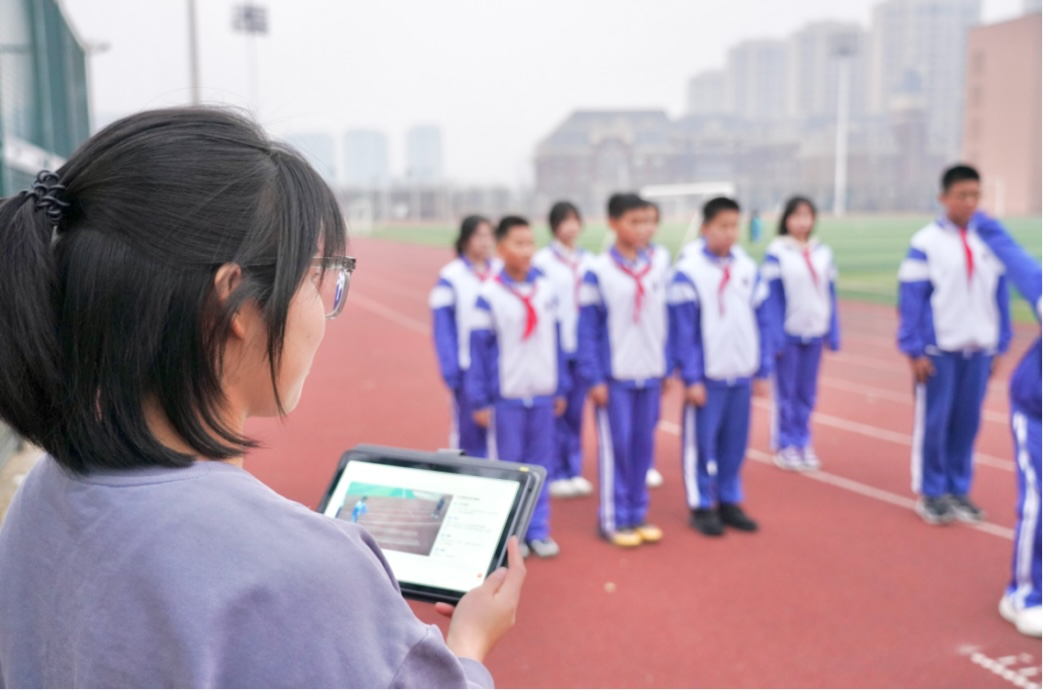 “预备,开始!”随着电子播报员的指令,学生下蹲、起跳、腾空、落地,“2米03!”跳远成绩立即被语音系统现场播报,同时也实时上传到了体育老师的教师机上,这是天津市第二新华中学体育课上的场景。