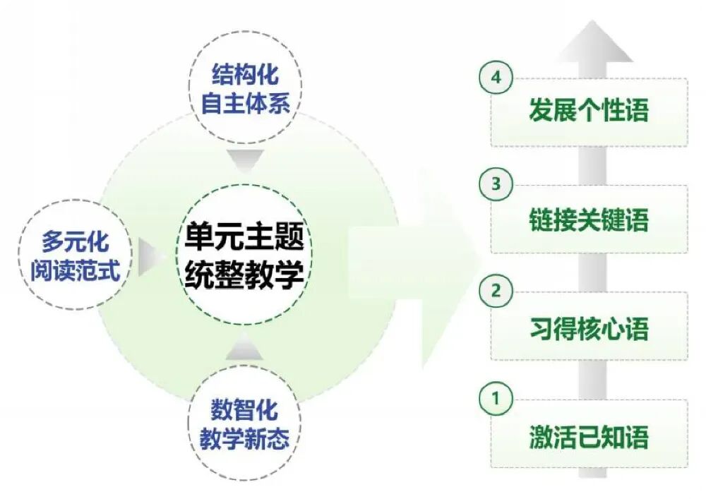 从课堂互动到课后提升,AI在海滨小学的英语听说教学中形成了“数据采集—分析—反馈—提升”的完整闭环。这背后,是“1-3-4”教学模式与智能工具的深度融合:以单元主题为核心,用结构化自主体系、多元化阅读范式、数智化教学新态搭建支架,推动学生从“激活已知语”到“发展个性语”的进阶。