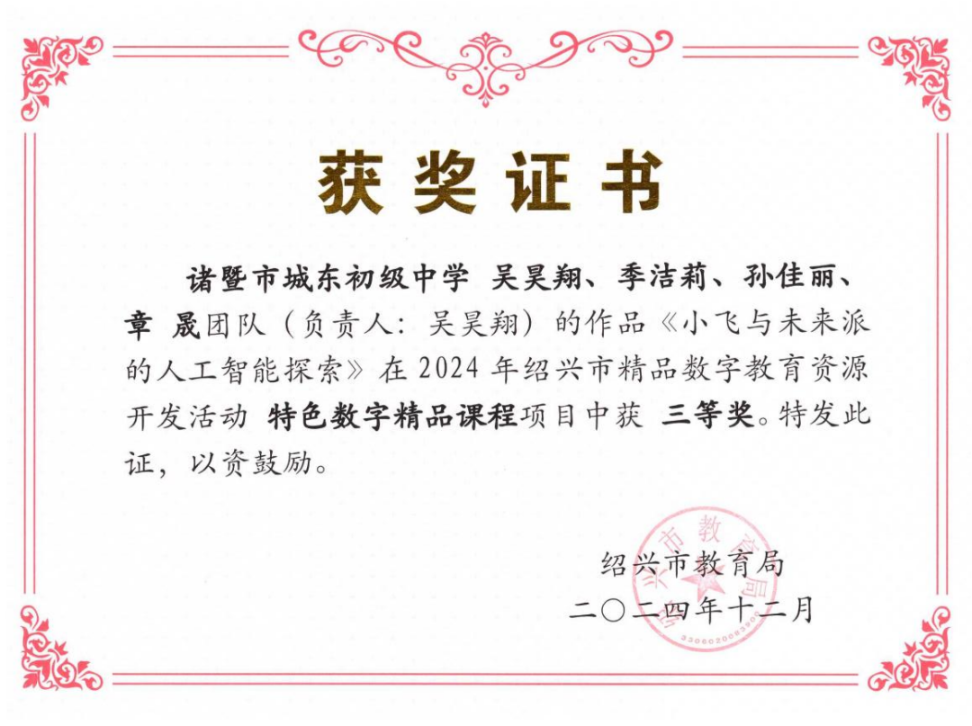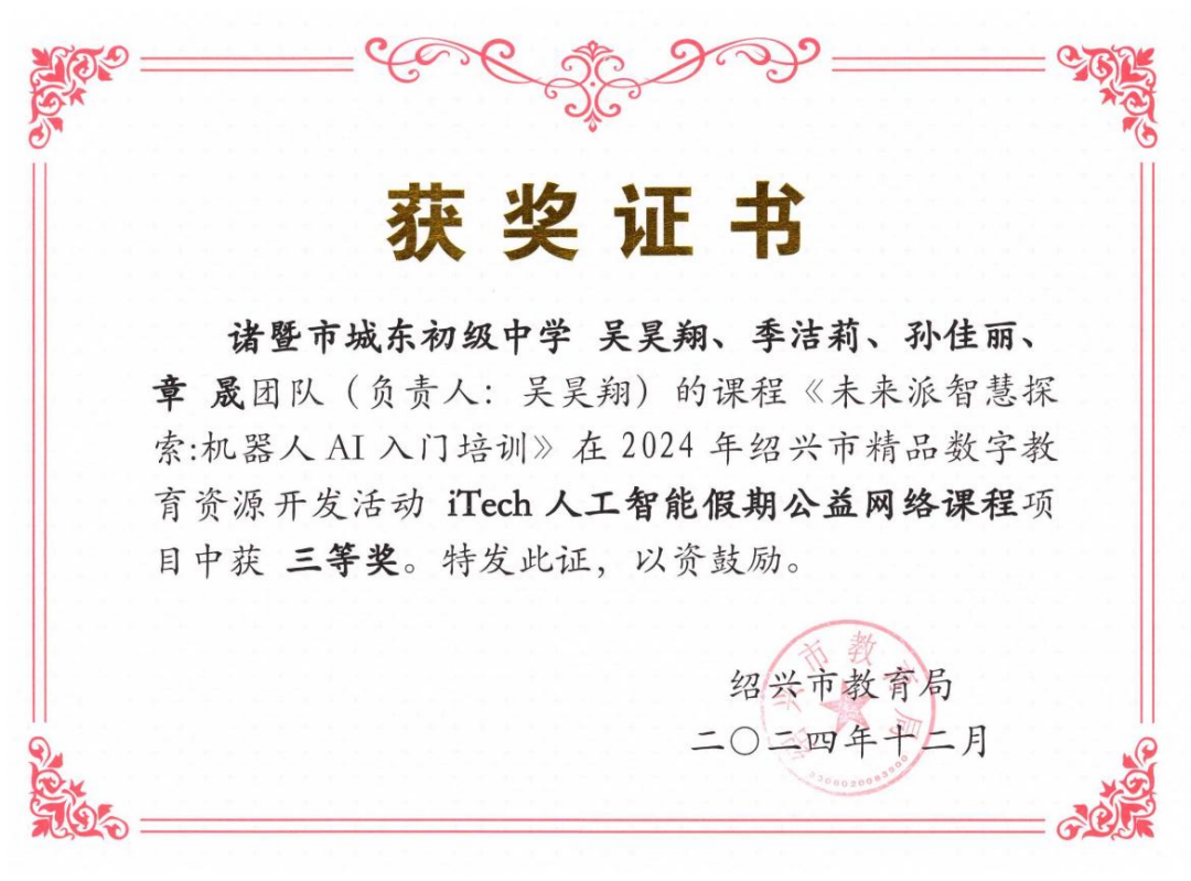 这一系列课程的实施,标志着城东初中在教育创新和未来人才培养方面取得了阶段性成果。未来,学校将进一步拓展课程应用场景,鼓励学生参加AI项目设计竞赛、跨校交流和科技作品展示,持续完善课程体系。通过这种前瞻性课程设计,城东初中为学生创造更广阔的成长空间,他们在未来能灵活应对挑战、持续创新,并具备跨学科综合能力。