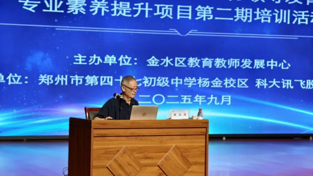9月14日,郑州市金水区局属中小学业务领导及骨干教师专业素养提升第二期培训活动在郑州市第四十七初级中学杨金校区报告厅顺利召开。本次培训由金水区教育教师发展中心主办,科大讯飞提供技术支持,旨在通过专家专题引领,推动人工智能技术与课堂教学深度融合,提升区域中小学教学创新实践水平。上海师范大学教育学院黎加厚教授,河南师范大学教育学部高义栋教授讲座指导,全区局属中小学业务副校长、教导主任、骨干教师及教研员等共计750余人参训。