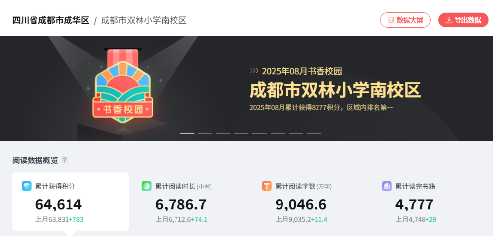 假期成为深度阅读的黄金期。今年暑假,双林小学依托数字阅读平台开展校级主题阅读活动,学生即使离校也能持续参与。全校总阅读时长近1200小时,阅读字数超363万字,读完书籍367本,多数学生养成每日阅读习惯。