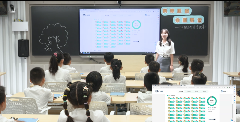 在成都双林小学三年级的一节语文课上,教师借助科大讯飞数字阅读平台,开展《中国古代寓言故事》整本书阅读课程教学。老师通过平台引导学生深度解读文本,学生使用数字阅读本进行批注与思考,课堂互动实时投屏,思维火花不断迸发。