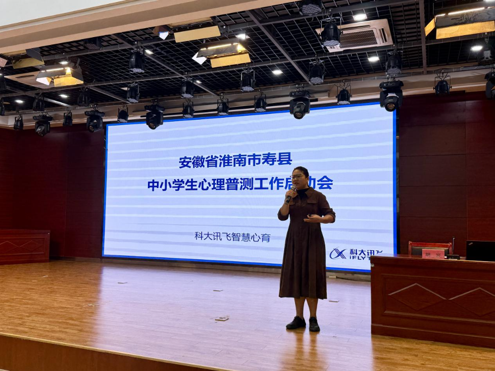 为进一步贯彻落实国家关于加强中小学生心理健康教育工作的要求,构建科学、系统的心理健康服务体系,9月25日,寿县教体局在寿县三中成功举办中小学“智慧心育”心理测评工作启动会。寿县教体局党委委员沈国文,寿县教体局学生心理健康工作负责人马从春,科大讯飞安徽大区教育业务总监刘明泽和全县各中小学负责人及心理健康教育教师代表共400余人齐聚现场,共同开启以科技赋能心理健康教育的新篇章。