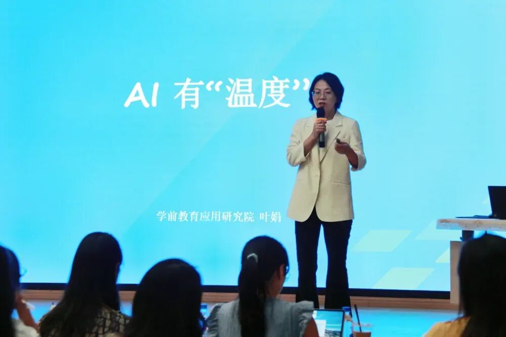 随后,中部六省学前教育AI融合创新应用协作中心主任、淘云科技学前教育应用研究院执行院长叶娟,在《AI有“温度”》的主题分享中提到,AI技术并非冷冰冰的工具,而是可以成为“有温度的教育伙伴”。通过AI阅读空间、编程启蒙、数学思维等实际案例,她生动展示了AI如何助力教师实现无感记录、过程评估、个性化支持,从而让教学教研活动更精准。