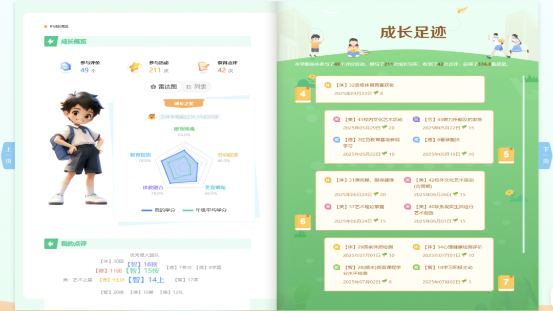 五年级的李同学以前对“综合素质”这个词毫无概念,现在他经常会查看自己的数字成长档案。就像游戏里的经验值,他能看到自己在德智体美劳各个维度的进步。