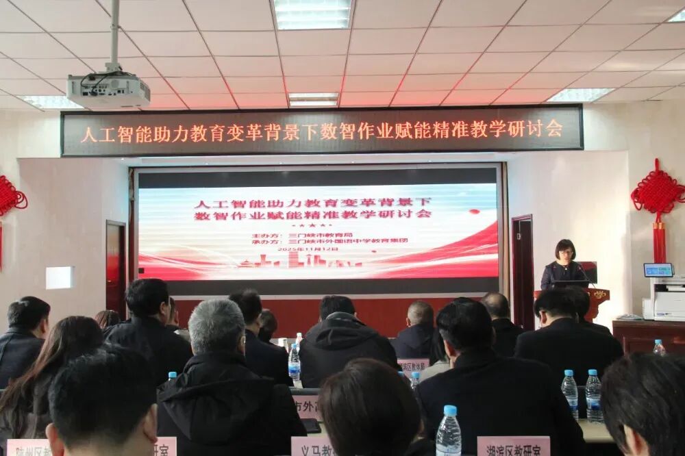 11月12日,“人工智能助力教育变革背景下数智作业赋能精准教学研讨会”在三门峡市外国语中学教育集团黄河路校区(阳光中学)顺利召开。会议由市县区教体局相关领导、全市初高中负责人及教研员共同参与,聚焦教育数字化转型路径交流实践经验。