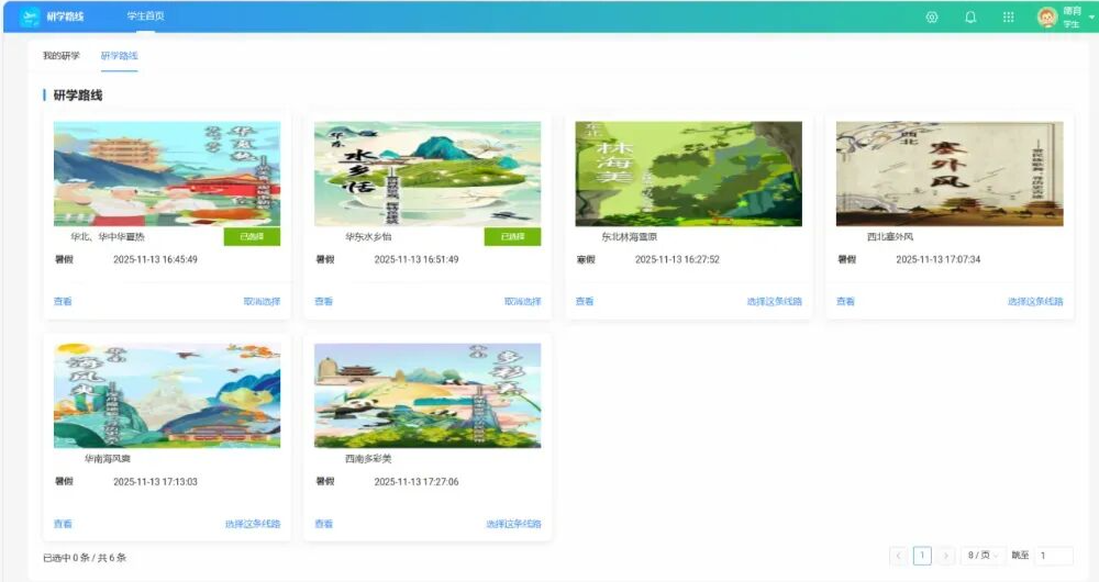 以德育引领为核心,学校为小学1-6年级师生打造了“智能研学新体验”。平台以一张“中国地图”为研学载体,助力学校从课堂内的家乡故事、校园实践等活动,延伸至“带着地图去研学”的真实场景。学生可与研学导师对话,生成个性化研学攻略和研学报告,实现从路线规划、实践记录到成果凝练的全流程数字化,形成“导览-实践-凝练”的闭环育人路径。
