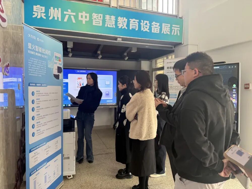 在泉州六中设置的科大讯飞智慧教育展区,一系列前沿应用吸引了与会嘉宾的兴趣。融合大模型的AI黑板革新了课堂互动模式;AI听说课堂有效提升学生英语能力;星火智能批阅机可在课间快速完成批改;奇思妙问好奇窗则启发了学生的探究思维。通过沉浸式体验,嘉宾们切身感受到了人工智能对教学模式创新和实现“减负增效”的推动作用。