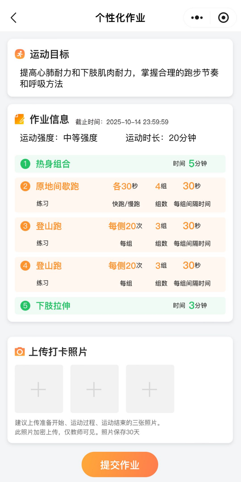 家校协同的学生运动作业界面