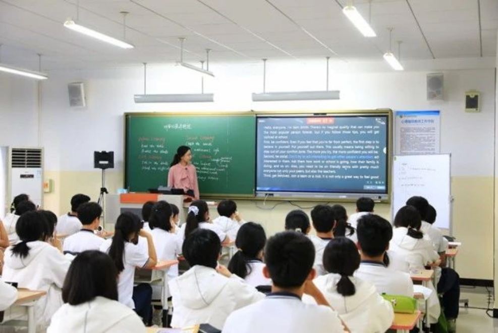 北京五中通州校区高一英语教师季长香带来了一节听说教学研究课《Learn to describe how to give suggestions——高中英语听说专项训练》。课上,季老师使用AI听说课堂下发任务,学生借助手中的语音答题器进行“听后记录并转述”活动的专项练习,上传个人转述音频后,系统会自动评分,教师结合录音回放和反馈报告针对性指导纠错,并进行师生评价和生生评价,帮助学生有效提升转述内容的完整性和语言表达的准确性、流畅性。