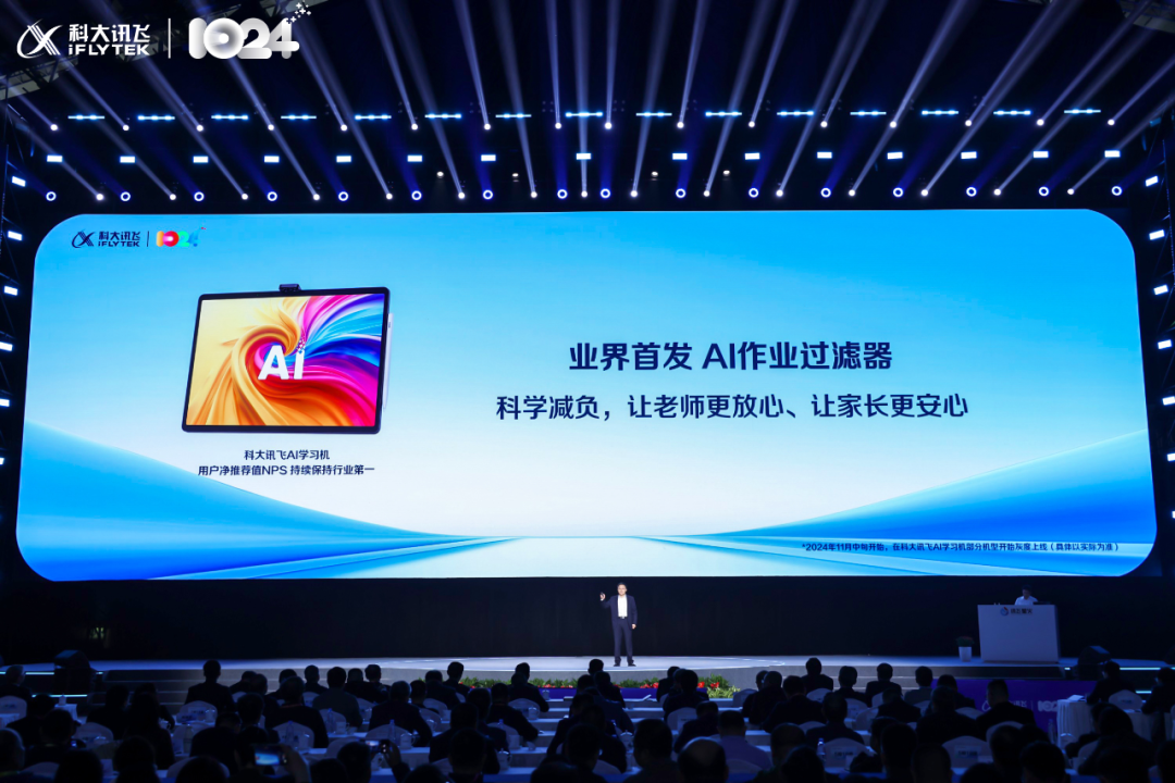 10月24日,第七届世界声博会暨科大讯飞全球1024开发者节在合肥奥林匹克体育中心盛大开幕。科大讯飞董事长刘庆峰、研究院院长刘聪发布了讯飞星火4.0 Turbo。面向教育场景,科大讯飞联合中国教科院,首次发布基于“问题链”的高中数学智能教师助手。同时,针对家庭教育,发布会上演示了旨在科学减轻孩子作业负担的AI作业过滤器。