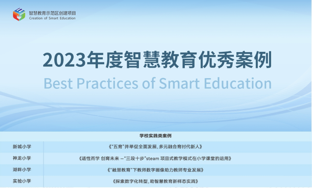 截至目前,经开区在智慧教育领域累计获奖294项,其中教师获国家级奖项23项、省级奖项31项,市级奖项百余项。智慧教育已然成为经开区的一张教育名片。2023年8月,教育部“智慧教育示范区”创建项目专家组公示了2023年度智慧教育优秀案例名单,经开区新城小学《“五育”并举促全面发展,多元融合育时代新人》、神龙小学《适性而学 创育未来——“三段十步”steam项目式教学模式在小学课堂的运用》、湖畔小学《“融慧教育”下教师数字画像助力教师专业发展》、实验小学《探索数字化转型,助智慧教育新样态实践》位列其中,荣获学校实践类优秀案例。